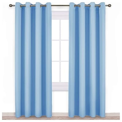 Nicetown Sky Blue Blackout Curtains Home Decor Window Treatment Ring Top Blackout Draperies Curtains For Living Room 2 Panels 52 By 84 Blue